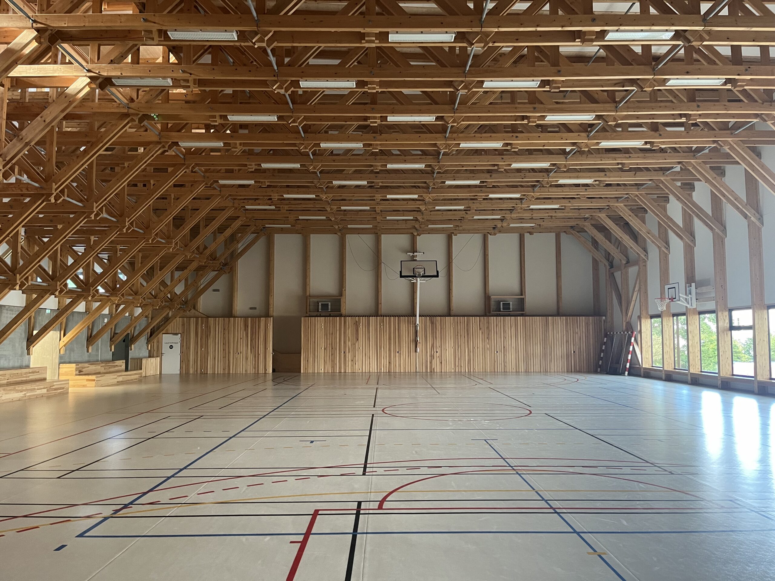 Nach dem Einsturz des Dachs 2012 wurde die Sporthalle Jean Lamour vollständig neu konzipiert. Ziel war es, Ökologie, Technik und Ästhetik zu verbinden und lokale Holzressourcen konsequent zu nutzen. Das Projekt zeigt, wie Architekten, Bauherren und Handwerksbetriebe gemeinsam ein nachhaltiges Bauwerk schaffen können. Kleine Holzabschnitte werden verwendet, Abfälle reduziert und auch Bäume mit geringerem Durchmesser verarbeitet.